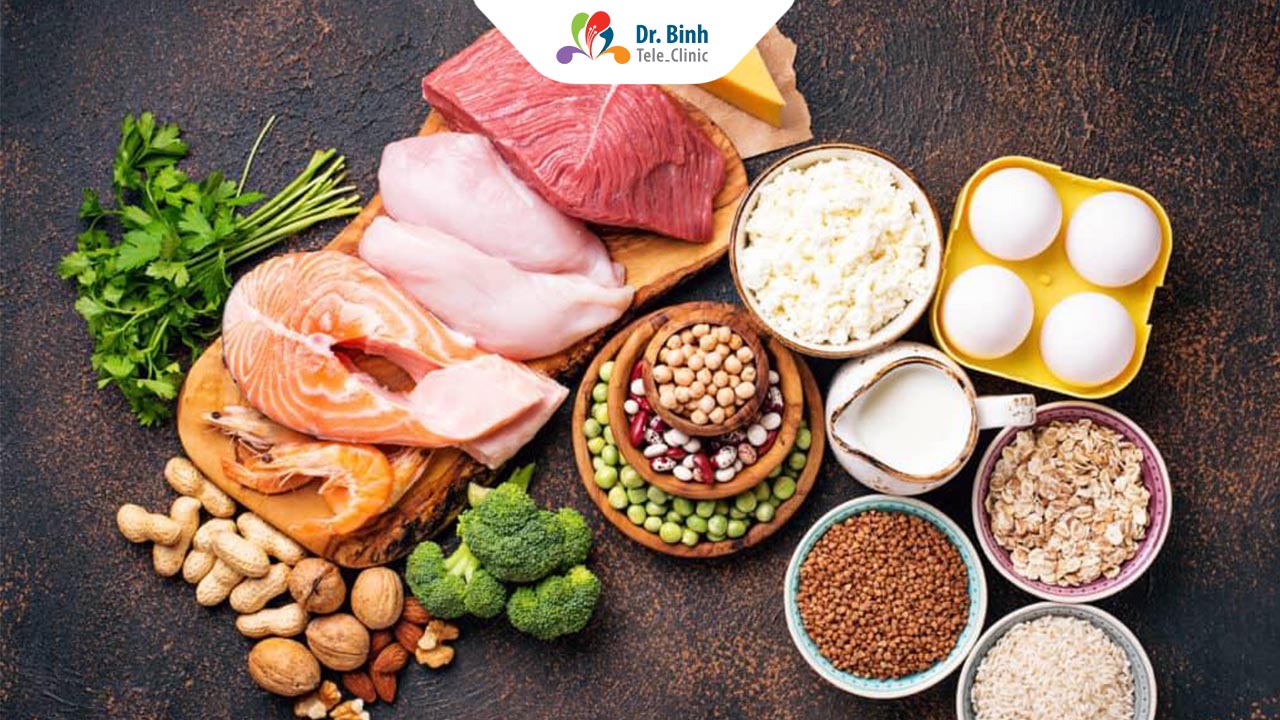 Nguồn thực phẩm: Thịt nạc (gà, bò), cá (cá hồi, cá thu), trứng, đậu hũ, các loại đậu (đậu lăng, đậu đen).