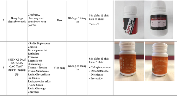 - Berry Jaga chewable candy bị phát hiện có chứa Tadalafil