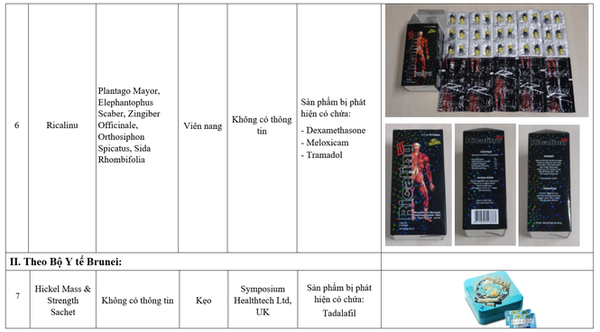 - Ricalinu bị phát hiện có chứa Dexamethasone, Meloxicam, Tramadol