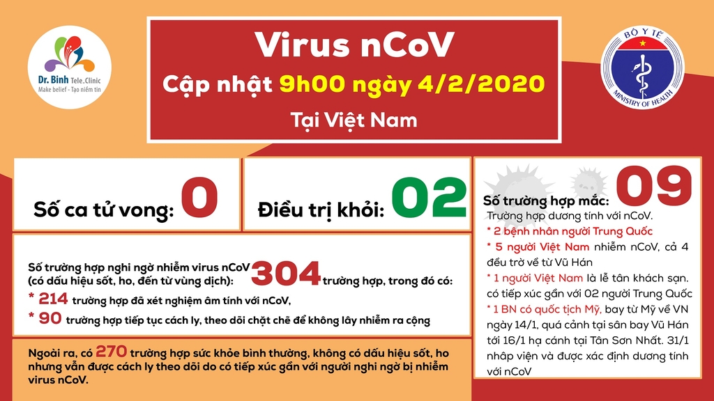 Như vậy đến thời điểm này, Việt Nam đã có 9 ca dương tính với nCoV, trong đó: