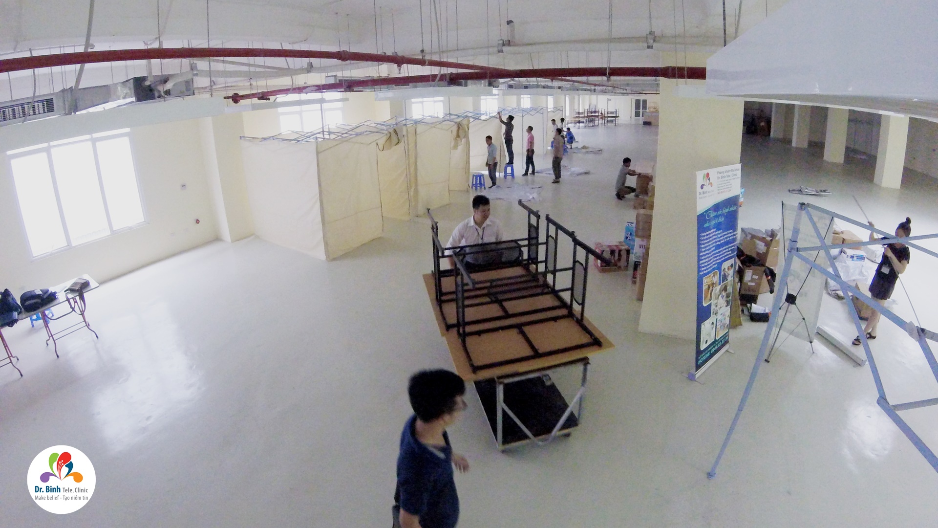 Trước ngày khám chính, công việc triển khai lắp đặt được diễn ra khẩn trương và chu đáo và cẩn thận. Mặc cho mồ hôi đẫm lưng áo, mặc cho những cơn mưa rào bất chợt, tinh thần mọi người vẫn không hề giảm sút.