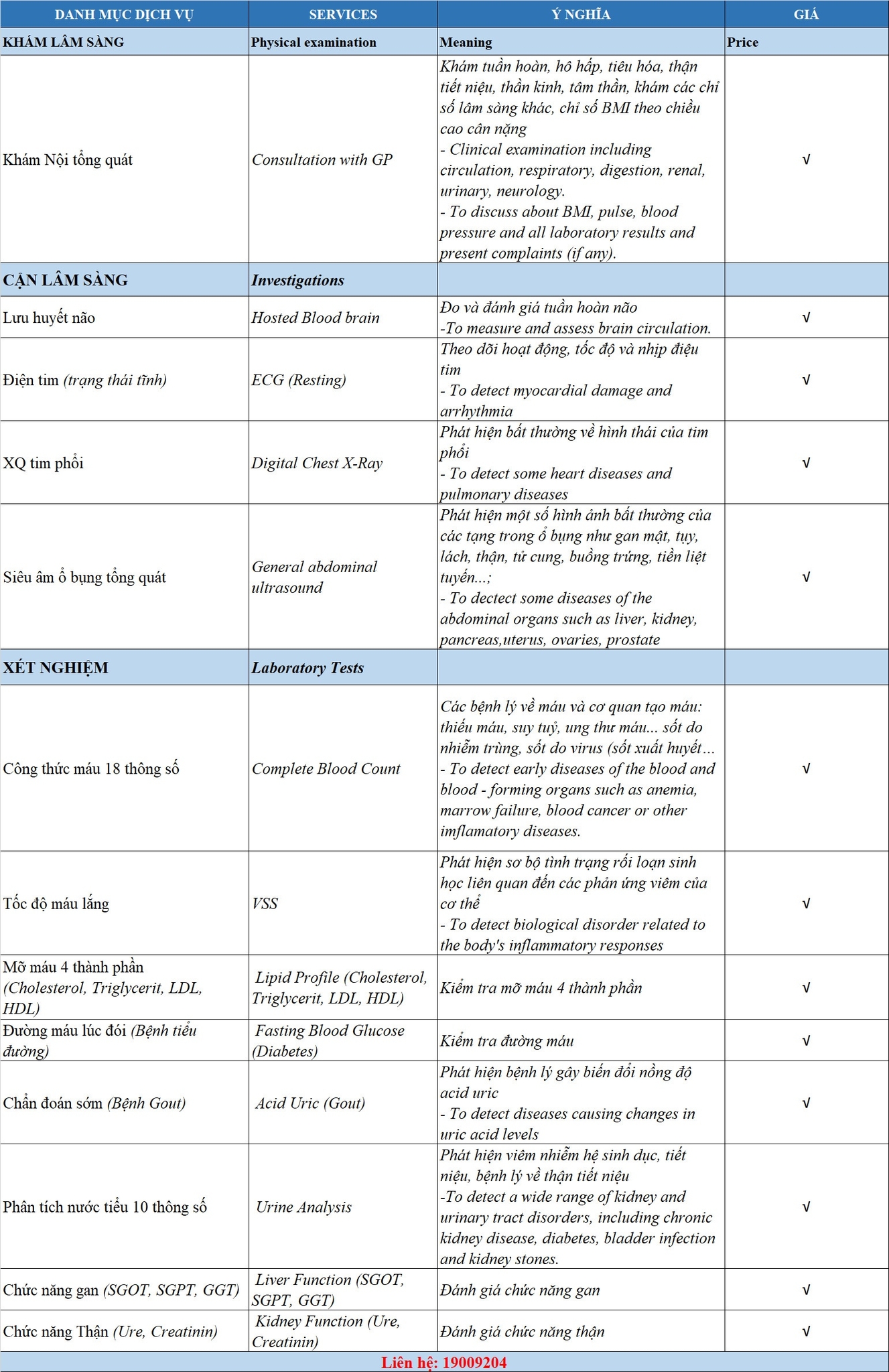 + Gói khám trên gồm các nội dung cơ bản tầm soát phát hiện bệnh. Nếu phát hiện bất thường hoặc khách hàng có nhu cầu chuyên sâu bác sĩ có thể bổ sung chỉ định phù hợp.