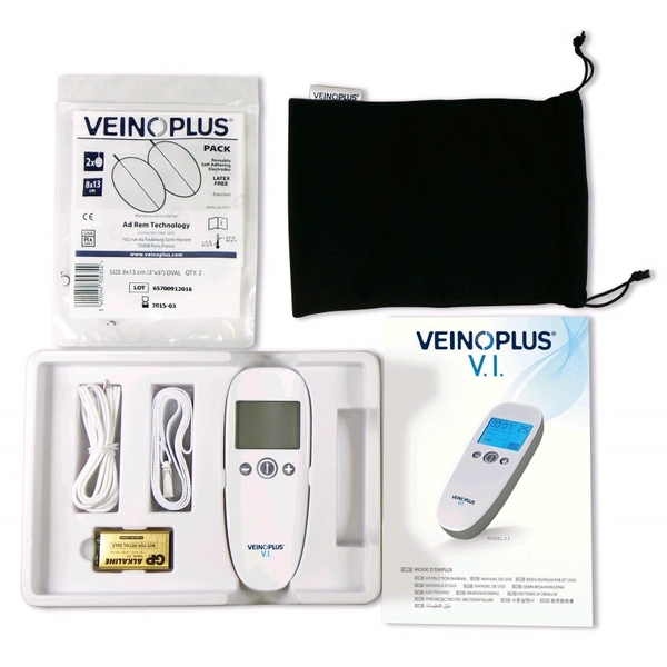 Máy điều trị giãn tĩnh mạch chân VEINOPLUS V.I kích thích xung điện để làm co bóp các cơ bắp chân - quả tim thứ 2, cũng như các cơ ngoại vi khác. Co bóp của cơ tạo ra sức ép sâu lên bề mặt các tĩnh mạch và mạch bạch huyết làm cải thiện lưu thông máu tĩnh mạch và bạch huyết.