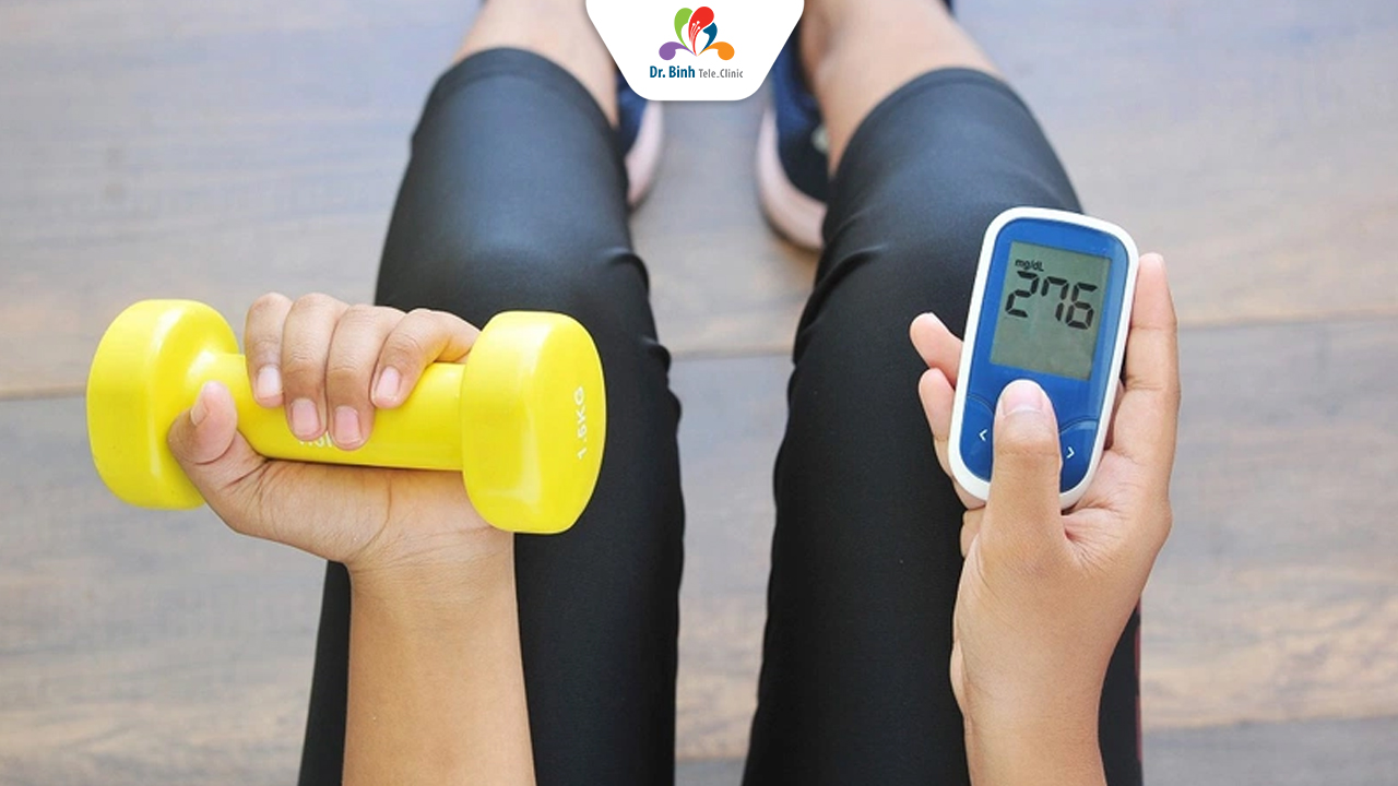 Theo dõi đường huyết khi tập: Đo đường huyết trước tập; nếu <5.0 mmol/L, ăn nhẹ (1 lát bánh mì, 1 quả chuối). Mang kẹo ngọt phòng hạ đường huyết.
