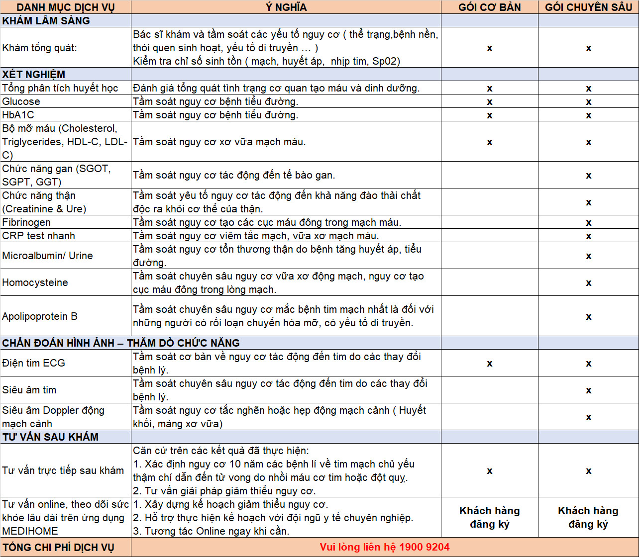 Với chi phí tầm soát hợp lý, Gói dự báo nguy cơ tim mạch 10 năm tại Dr. Binh Tele_Clinic bao gồm các hạng mục: