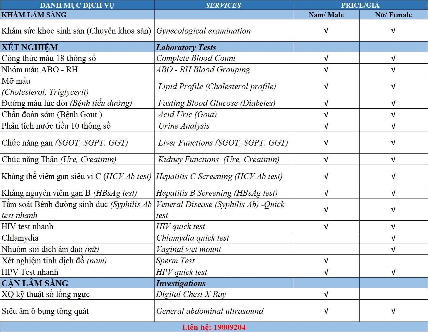 GÓI KIỂM TRA SỨC KHỎE TIỀN HÔN NHÂN (P-08)