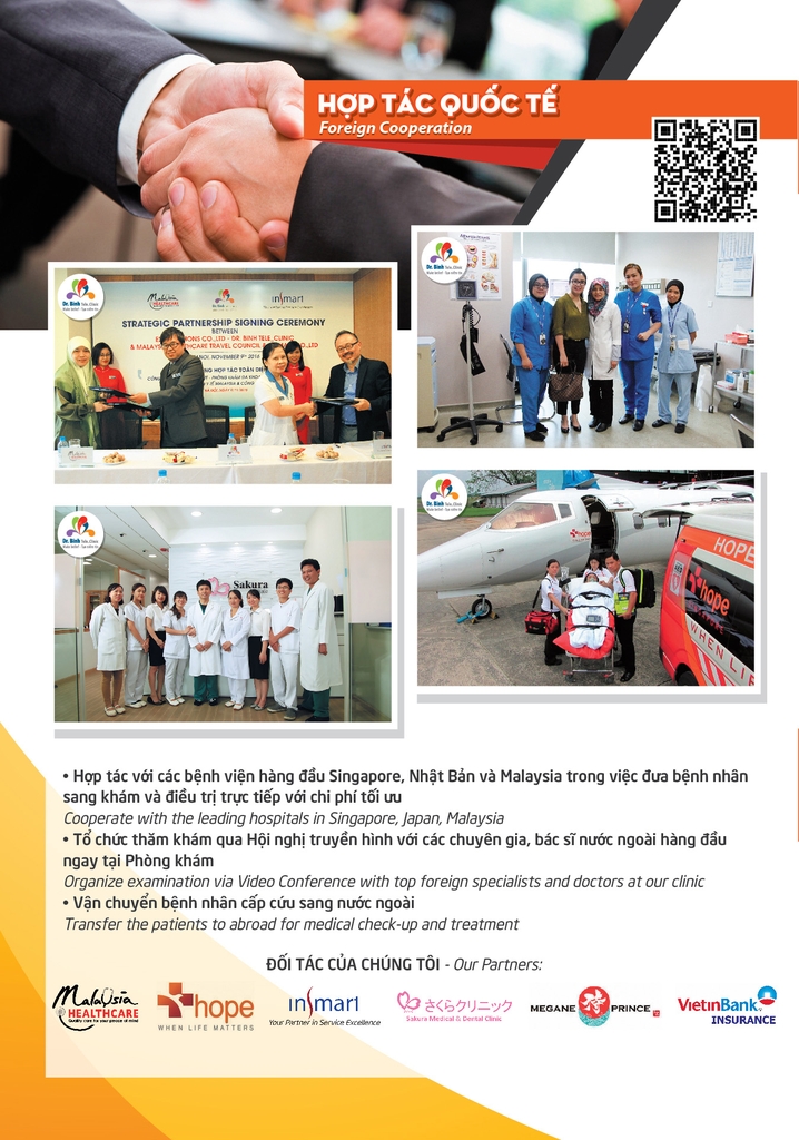- Hợp tác với các bệnh viện hàng đầu Singapore, Nhật Bản và Malaysia trong việc đưa bệnh nhân sang khám và điều trị trực tiếp với chi phí tối ưu.