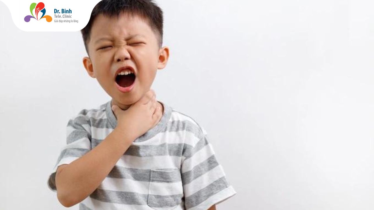 Viêm họng có thể do virus như Adenovirus, Rhinovirus,... hoặc do vi khuẩn như liên cầu khuẩn gây ra, với các triệu chứng nhẹ như sổ mũi, hắt hơi, ho, và đau sưng ở cổ họng, làm cho việc hít thở và nuốt trở nên khó khăn. Nếu sau 5-7 ngày, triệu chứng viêm họng của trẻ không giảm, kèm theo sốt cao trên 38,5 độ, cần đưa trẻ đến cơ sở y tế để được điều trị, ngăn ngừa nguy cơ bệnh trở nặng.