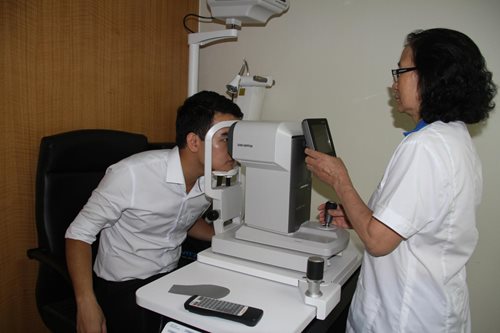 Cán bộ trẻ của Vietcombank được bác sĩ chuyên khoa mắt kiểm tra và tư vấn kỹ càng