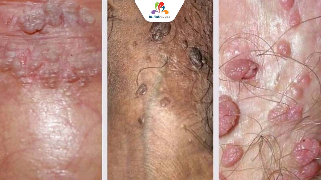 Biểu hiện: Các nốt sùi nhỏ, mềm, màu da, hồng hoặc nâu, có hình dạng giống súp lơ hoặc mào gà. Chúng có thể mọc đơn lẻ hoặc thành cụm ở vùng sinh dục (âm hộ, âm đạo, cổ tử cung, dương vật, bìu), hậu môn, miệng, hoặc họng.