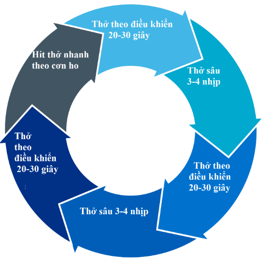 Hít sâu từ từ vào bằng mũi, sau đó thở nhanh không khí ra bằng miệng, lặp lại điều này trong 3-4 chu kỳ hoặc cho đến khi bạn cảm thấy đờm đã sạch.