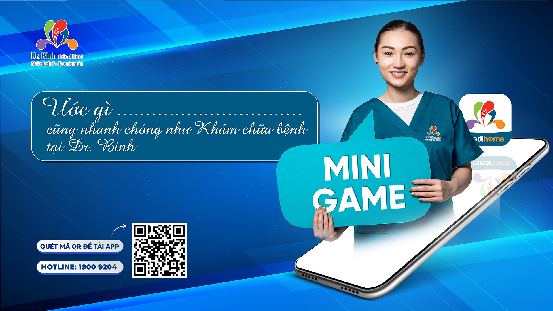 Vậy với bạn, bạn đang mong điều gì cũng nhanh và tiện như quy trình khám chữa bệnh tại Dr. Binh Tele_Clinic? Tham gia ngay #minigame và #chia_sẻ ngay điều ước với chúng tôi để có cơ hội nhận được những phần quà sức khỏe ý nghĩa trị giá lên tới 1.675.000 đồng.