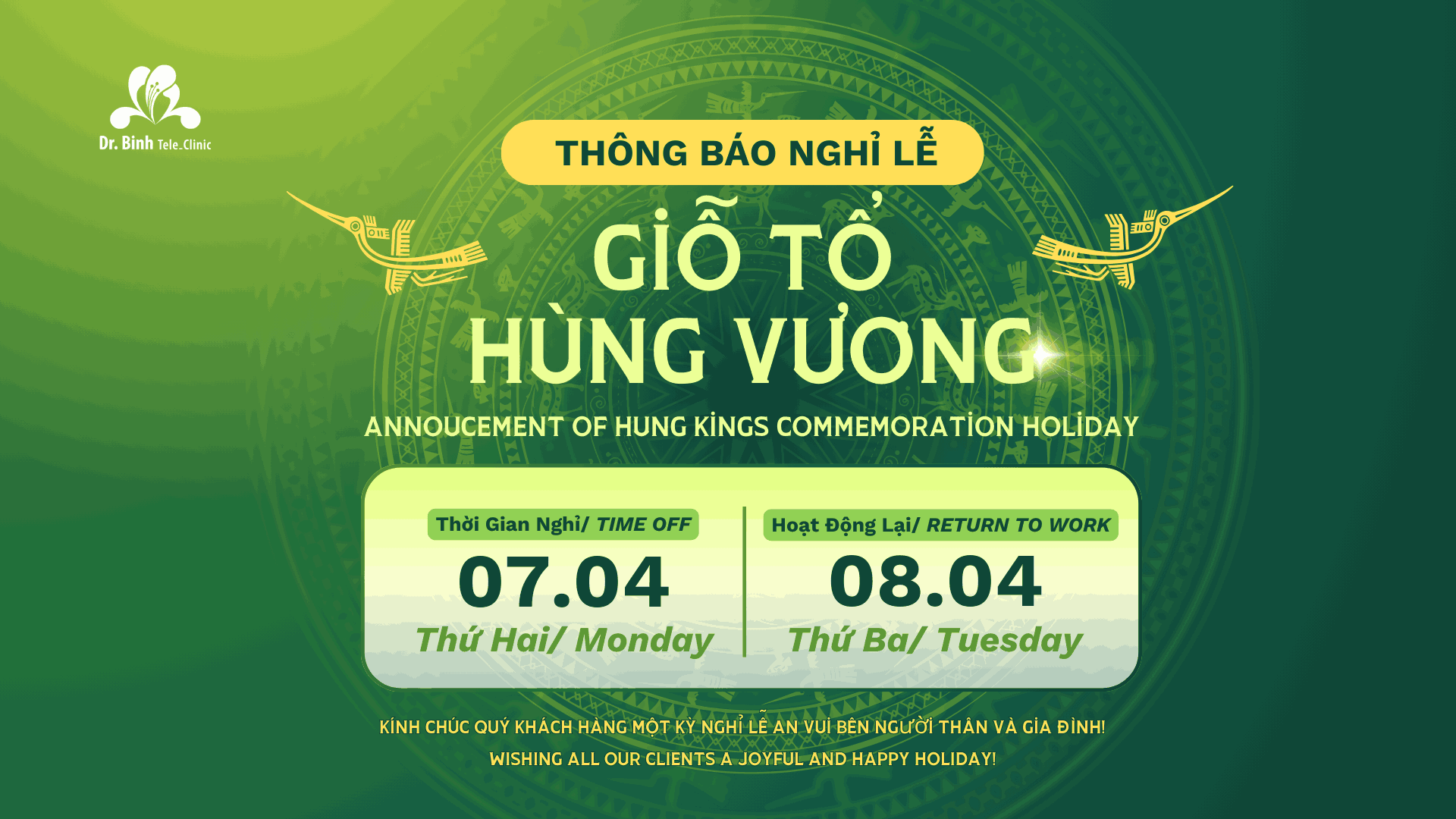 Dr. Binh Tele_Clinic would like to inform our valued customers about our holiday schedule for Hung Kings’ Commemoration Day.