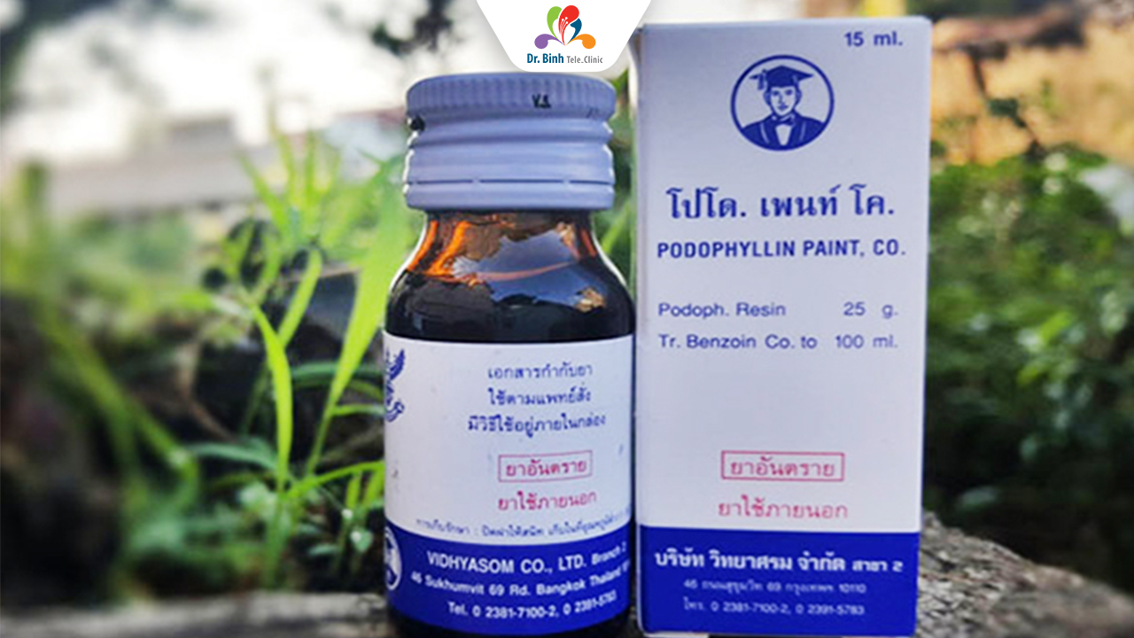 Podophyllin: Thuốc bôi ngoài giúp làm rụng các nốt sùi. Thuốc được bôi trực tiếp lên vùng tổn thương, nhưng cần cẩn thận để tránh làm tổn thương da lành xung quanh. Liều lượng và tần suất sử dụng phải tuân theo hướng dẫn của bác sĩ.
