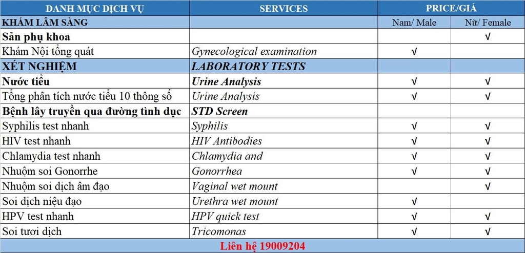 Hạng mục khám bệnh lây truyền qua đường tình dục - Dr. Binh Tele_Clinic