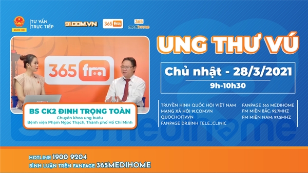 Vì vậy, hãy gửi tất cả những câu hỏi, thắc mắc tới hotline 19009204 nhánh 1 để nhận tư vấn trực tiếp của BSCK II ĐINH TRỌNG TOÀN (Chuyên khoa Ung bướu - Bệnh viện Phạm Ngọc Thạch, TP HCM) về "UNG THƯ VÚ" hoàn toàn MIỄN PHÍ trong chương trình phát sóng trực tiếp trên kênh truyền hình Quốc hội Việt Nam vào hồi 09h00 – 10h30 sáng Chủ nhật ngày 28/03/2021.