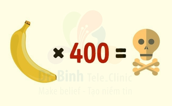 Chuối: Trong số các loại dưỡng chất, vitamin có trong thành phần của chuối, kali là chất vi lượng không thế không nhắc tới. Quá nhiều kali có thể gây ra ngộ độc và tử cong. Tuy nhiên, phải cần tới 400 trái chuối mới có thể làm được điều này.