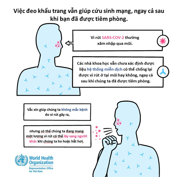 Tổ chức Y tế Thế giới (WHO) ngày 14/5 khuyến nghị người dân đã tiêm vắc-xin phòng Covid-19 vẫn đeo khẩu trang ở các khu vực có mật độ lây nhiễm nCoV cao.